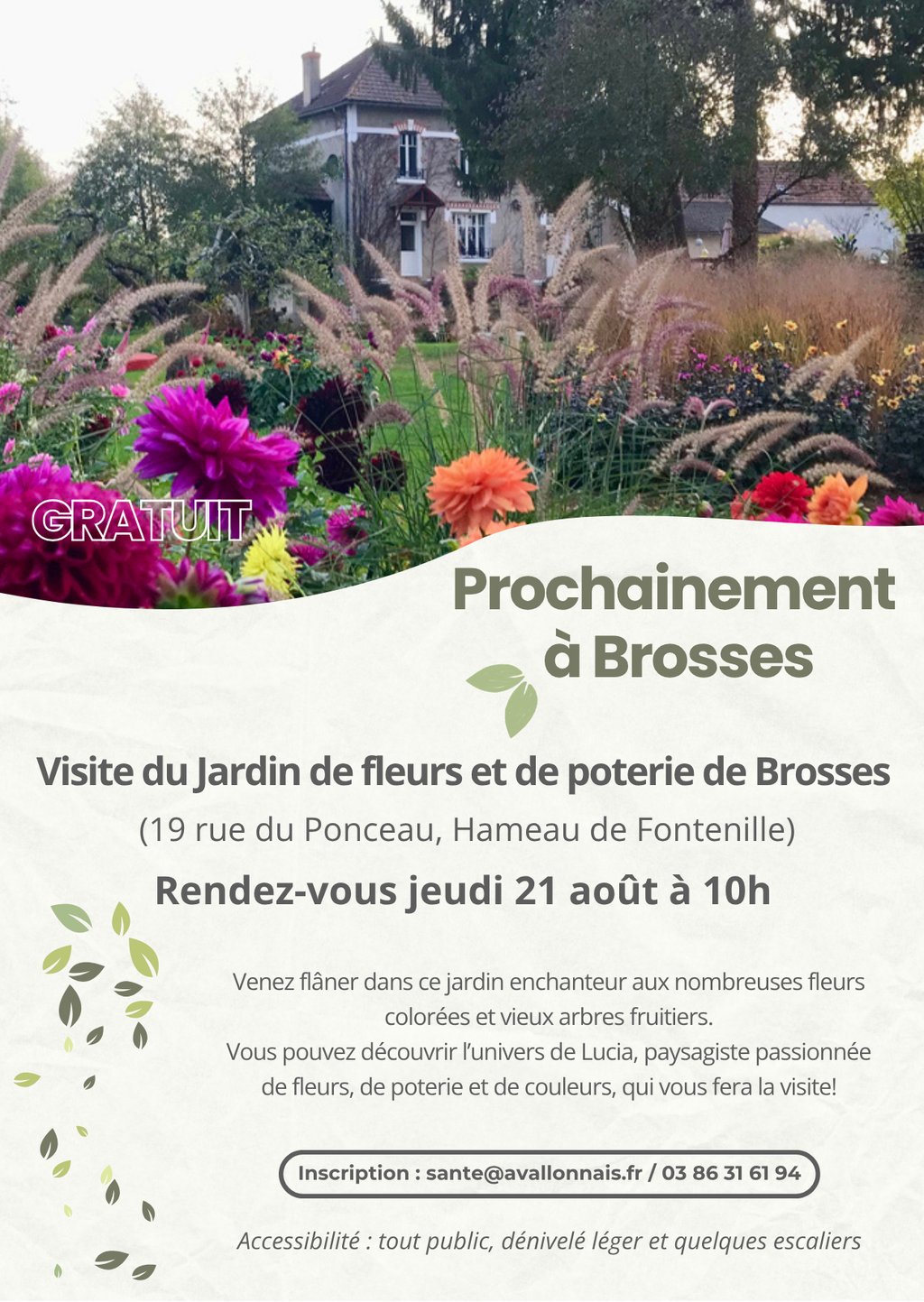 Initialement prévue demain, la visite du jardin de fleurs et poterie de Brosses est déplacée au vendredi 22 août à […]