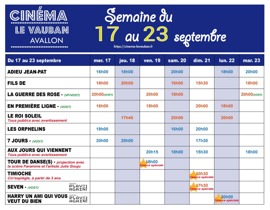 🎬 Programme du cinéma