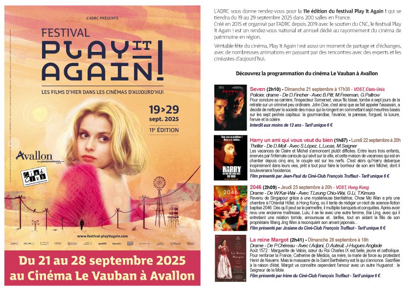 🎬 Le Festival Play It Again débarque au cinéma Le Vauban !